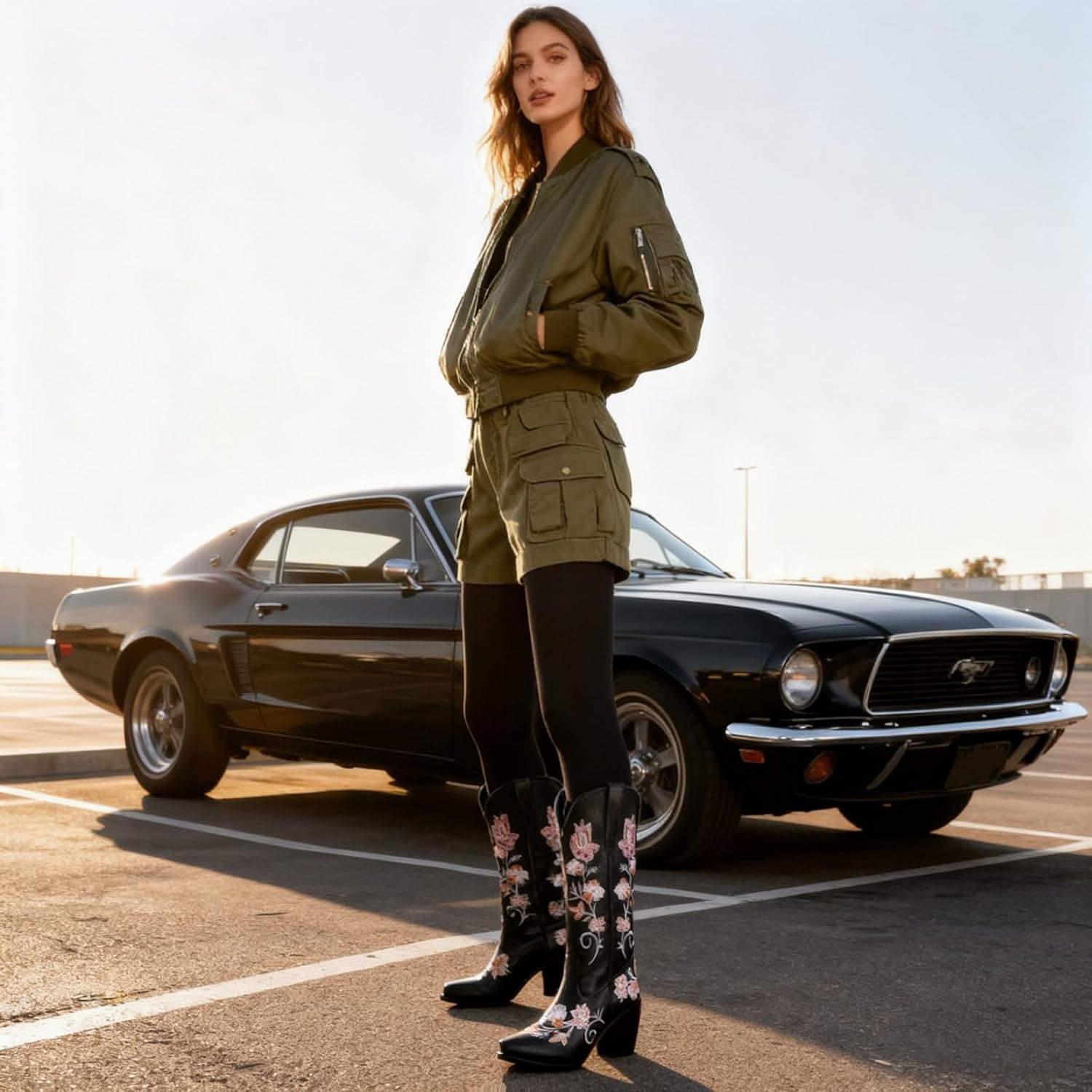 Cowboy Chunky Floral Embroidered Western Knee High Boots