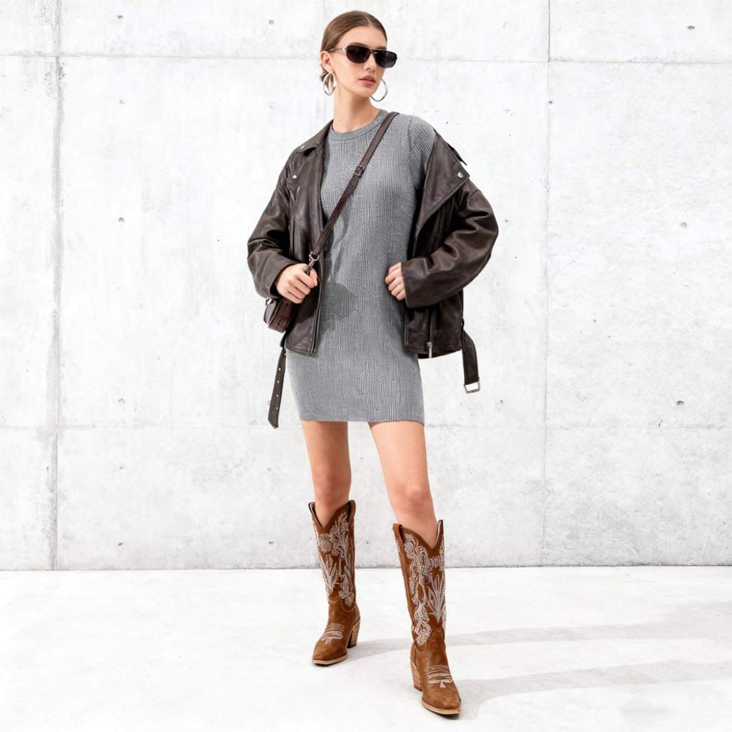 Women's White Cowboy Boots Knee High, Floral Embroidered Western Boots with Pointed Toe & Chunky Heel, Pull On Cowgirl Boots for Spring Outfit, Concert, Festival & Daily Wear
